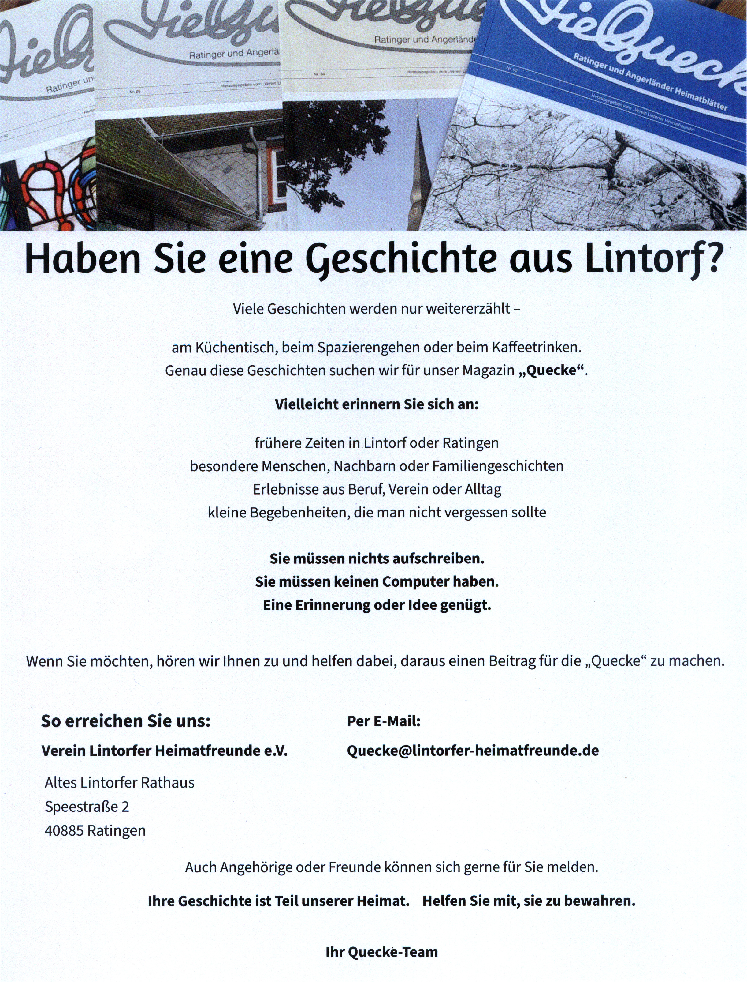 Verkauf der Quecke im Vereinsbüro und in Lintorfer Geschäften.
